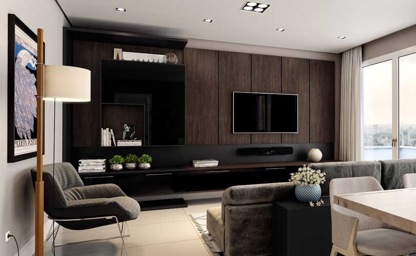 Nada como dar um tempo na correria da rotina e assistir a um bom filme ou à sua série preferida, não é? Embora a TV seja protagonista, esses momentos pedem ambientes acolhedores pra tornar a experiência ainda melhor – e, para isso, é essencial dedicar um tempo a pensar nos móveis e itens de decoração do seu home. Listamos aqui cinco dicas que podem ajudar você na construção desse espaço. Confira: Pra dar aquele ar relax de cinema em casa, invista em pontos de luz posicionados estrategicamente no painel ou em pequenas luminárias distribuídas nos cantos da sala. Quanto mais clean, mais bonito e funcional o espaço. Escolher alguns livros e objetos para ficarem expostos em nichos ajuda a dar identidade e deixar tudo com a sua cara. Mas apostar em gavetões pra guardar a maior parte das coisas mantém a organização e dá destaque para a TV. Plantas posicionadas em nichos e bancadas – ou até mesmo no chão, em lugares estratégicos – trazem um ar contemporâneo para o ambiente e criam conexão com a natureza, ajudando a construir a atmosfera ideal para relaxar. Industrial? Refinado? Retrô? Defina um estilo para guiar toda a estética do espaço e escolha o revestimento que mais combina com ele. Pode ser amadeirado, brilho, colorido, P&B Painel e TV de frente para o sofá proporcionam mais conforto na hora de assistir alguma coisa!
